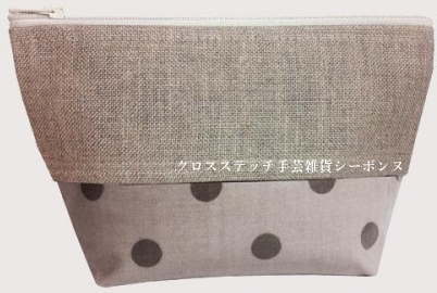 クロスステッチ刺繍ポーチ 輸入 ルボヌールデダム Le Bonheur des Dames 刺しゅう Pochette en lin et coton enduit pois gris フランス TCE15