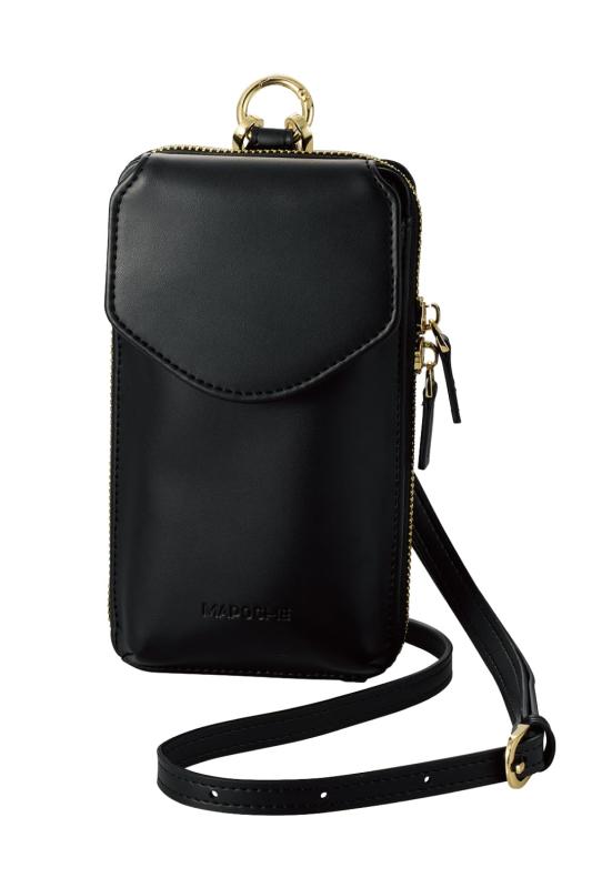 エレコム スマホショルダー スマホポーチ MAPOCHE お財布一体型 肩掛け マグネットボタン ジェットブラック P-MAP04BK
