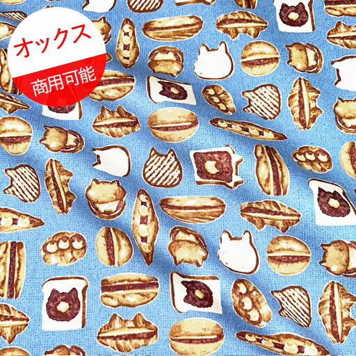 【1500円以上で送料無料】【オックス】★10cm単位続けてカット★アニマルブレッド ねこ にゃんバター サックス地 2025