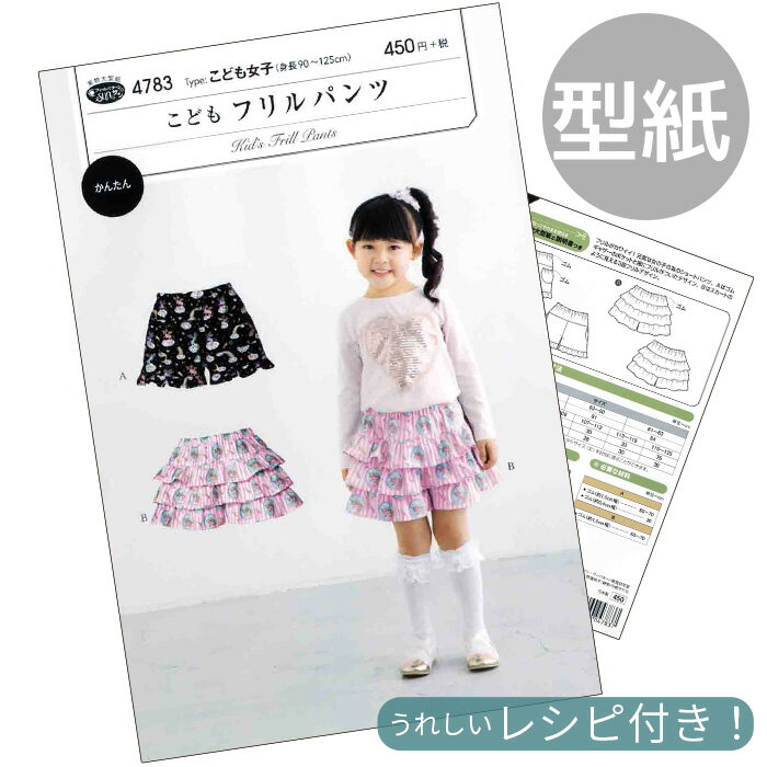 ★ 3,980円以上ご注文で、宅配便・ゆうパケット 送料無料 ★【1】日本郵便 ゆうパケット(メール便) 全国一律 280円■ポストへのお届け(盗難、未投函などの補償なし。日時指定不可。)■厚み3cm、3辺合計60cm以内まで★規定サイズ内に収めるコツ★商品名上に記載の 「#ゆうパケ○点可」 の数字をご参考に、上手にお買い物なさってください。※同一商品を注文した場合、何点まで入るかの目安の数字となります。【下記の場合、宅配便に変更させていただきます↓】・規定サイズを超える場合★同時に送料も変更させていただきます。■「ゆうパケット送料無料」と記載のある商品で、送料無料希望の方はゆうパケットをご選択ください。ただし、「ゆうパケット送料無料」商品をご注文でも、宅配便希望の場合は、宅配便をご選択ください(送料の差額が発生します)。------------------------【2】日本郵便 ゆうパック(宅配便) 全国一律 650円日時指定OK!■3,980円以上のお買い上げでも、配送方法「ゆうパケット」希望にチェックがある場合は、ゆうパケットでのお届けとなります。【ゆうパケット・ゆうパック共通注意事項】※ご注文後に、複数通に分けてのご発送はできかねます。■ロット(生産時期)が異なると、同じ品番のものでもカラー、サイズ、品質が変わります。同じ種類、材料、染料を用いても製造過程において完璧に同じものを再現することが難しく、このような現象はどの商品にも見られます。 詳しくはこちら→前回とは色や幅が異なるという理由での、返品交換はお断りをしていますのでご理解ください。■領収書、明細書は同封しておりません。(エコ、個人情報保護、配送のスピード化などの理由によるため)【1】領収書商品発送後、購入履歴画面の「領収書を発行する」ボタンからPDFで発行できます。(※後払い決済を除く)▼下記の場合は、領収書の発行は出来ません。【後払い決済】運収納印のある払込受領書が公的な領収書となります。【クレジット】お客様ご契約のクレジット会社が発行するご利用明細書が代わりとなります。【コンビニ決済】払込受領証が領収書となります。【全額ポイント支払い】ご請求金額が0円のため発行できません。------------------------【1】明細書▼明細書をお入れしておりません。・「ご注文確定メール」が明細書の代わりとなります。・楽天会員様はご購入履歴からもご確認いただけます。------------------------当店からのメールを必ず受信していただきますよう、「ドメイン指定受信解除」していただきますようお願いいたします。(my-mama@d5.dion.ne.jp と、 auc-my-mama@shop.rakuten.co.jp)【1】商品のカットに関しまして・生地、ブレード、ゴム等、長さを指定してのカットのご依頼はお受けできかねます。(例:1Mを5枚に分けて、1M・2Mを1枚ずつ、など)・カット販売の商品に関しましては、ご注文いただいた数量をつながった状態でお届け致します。(ご注文数が多い場合は途中でカットしたものをお届けする場合がございます。)フィットパターンSUNサンこどもフリルパンツ 型紙取説付き(4783)フリルがカワイイ!元気な女の子の為のショートパンツ。こども女子(身長90~125cm)Aはゴムギャザーのポケットと裾にフリルがついたデザイン。Bはスカートのように見える3段フリルデザイン。適した布地:中薄タイプの布地。(ローン/ソフトブロード/カラーシーチング/ドビークロス/綿麻/先染)【商品詳細】■商品番号msun-4783■素材紙■サイズW142xH214xD4mm■ゆうパケット8点まで可能■おすすめカテゴリその他の型紙はこちらから▼ お気に入りの生地で手作り