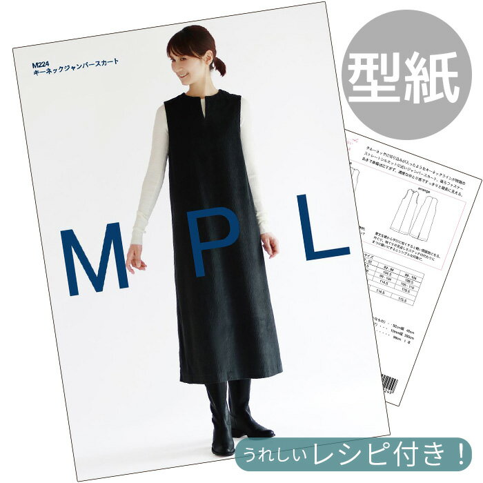 ★ 3,980円以上ご注文で、宅配便・ゆうパケット 送料無料 ★【1】日本郵便 ゆうパケット(メール便) 全国一律 280円■ポストへのお届け(盗難、未投函などの補償なし。日時指定不可。)■厚み3cm、3辺合計60cm以内まで★規定サイズ内に収めるコツ★商品名上に記載の 「#ゆうパケ○点可」 の数字をご参考に、上手にお買い物なさってください。※同一商品を注文した場合、何点まで入るかの目安の数字となります。【下記の場合、宅配便に変更させていただきます↓】・規定サイズを超える場合★同時に送料も変更させていただきます。■「ゆうパケット送料無料」と記載のある商品で、送料無料希望の方はゆうパケットをご選択ください。ただし、「ゆうパケット送料無料」商品をご注文でも、宅配便希望の場合は、宅配便をご選択ください(送料の差額が発生します)。------------------------【2】日本郵便 ゆうパック(宅配便) 全国一律 650円日時指定OK!■3,980円以上のお買い上げでも、配送方法「ゆうパケット」希望にチェックがある場合は、ゆうパケットでのお届けとなります。【ゆうパケット・ゆうパック共通注意事項】※ご注文後に、複数通に分けてのご発送はできかねます。■ロット(生産時期)が異なると、同じ品番のものでもカラー、サイズ、品質が変わります。同じ種類、材料、染料を用いても製造過程において完璧に同じものを再現することが難しく、このような現象はどの商品にも見られます。 詳しくはこちら→前回とは色や幅が異なるという理由での、返品交換はお断りをしていますのでご理解ください。■領収書、明細書は同封しておりません。(エコ、個人情報保護、配送のスピード化などの理由によるため)【1】領収書商品発送後、購入履歴画面の「領収書を発行する」ボタンからPDFで発行できます。(※後払い決済を除く)▼下記の場合は、領収書の発行は出来ません。【後払い決済】運収納印のある払込受領書が公的な領収書となります。【クレジット】お客様ご契約のクレジット会社が発行するご利用明細書が代わりとなります。【コンビニ決済】払込受領証が領収書となります。【全額ポイント支払い】ご請求金額が0円のため発行できません。------------------------【1】明細書▼明細書をお入れしておりません。・「ご注文確定メール」が明細書の代わりとなります。・楽天会員様はご購入履歴からもご確認いただけます。------------------------当店からのメールを必ず受信していただきますよう、「ドメイン指定受信解除」していただきますようお願いいたします。(my-mama@d5.dion.ne.jp と、 auc-my-mama@shop.rakuten.co.jp)【1】商品のカットに関しまして・生地、ブレード、ゴム等、長さを指定してのカットのご依頼はお受けできかねます。(例:1Mを5枚に分けて、1M・2Mを1枚ずつ、など)・カット販売の商品に関しましては、ご注文いただいた数量をつながった状態でお届け致します。(ご注文数が多い場合は途中でカットしたものをお届けする場合がございます。)フィットパターンSUNサンキーネックジャンパースカート 型紙 取説付き(M224)クルーネックに切り込みが入ったようなキーネックラインが特徴のストレートシルエットに近いジャンパースカート。大人(身長160cm前後、バスト75-104cm、ヒップ82-110cm)コンシールファスナー使用で身幅は広すぎず、適度なゆとり感ですっきりと縦長に見えます。arrangeで着丈を短くすることもできます。適した布地:中~中厚程度のソフトな布地(タイプライター/ジョーゼット/ツイル/ギャバ/サージ/フラノ/コーデュロイ/綿/リネン/ウール/ポリエステル)【商品詳細】■商品番号msun-m224■素材紙■サイズW142xH196xD8mm■ゆうパケット8点まで可能■おすすめカテゴリその他の型紙はこちらから▼ お気に入りの生地で手作り