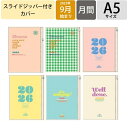 手帳 RYURYU リュリュ 2025 9月始まり (2026 年 1月) 月間式(ブロック) A5 スケジュール帳 月曜始まり スライドジッパー付きカバー おしゃれ かわいい 手帳カバー スケジュール帳 手帳のタイムキーパー