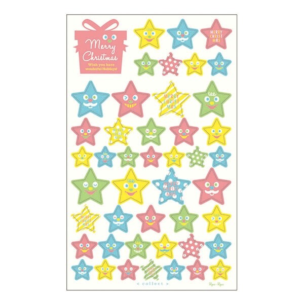 【1000円以上お買い上げで送料無料♪】リュリュ クリスマス コレクトシリーズ クリスマス スターフェイス シール 星 パステル カラー デコ ラッピング - メール便発送