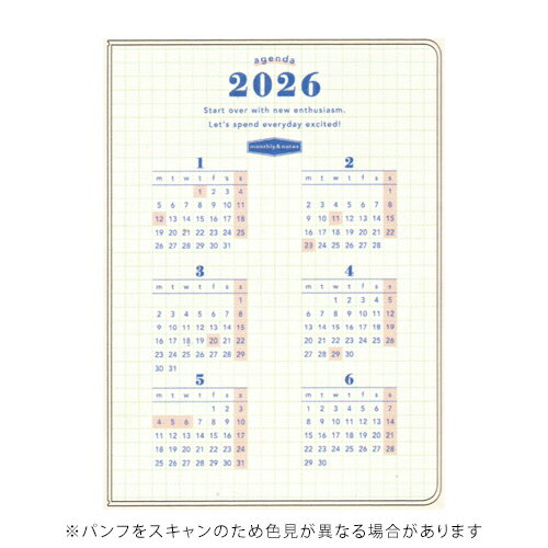 〇月曜始まり 〇透明カバー 〇サイズ:H188×W130×D5mm 〇年間カレンダー 2025年9月〜12月・2026年・2027年 〇スケジュール計画ページ 2025年9月〜2026年12月 〇マンスリースケジュール 2025年9月〜2027年1月 〇ノートページ(グリッド)/しおり/ポケット