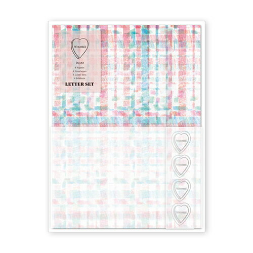 詳細説明【特長】・水彩や筆のタッチなど手描き感のあるWHOMEEのパッケージイラストの便箋を、トレーシングペーパー素材の封筒で包む、優しい雰囲気のレターセットです。・筆記面はそれぞれのイラストで合わせたカラーになっています。・宛名ラベルセットとロゴのハート形の封緘シールには、シルバー箔でアクセントを施しています。 【セット内容】・便箋8枚・封筒4枚・宛名/差出人ラベル4セット・封緘シール4枚※トレーシングペーパー封筒のご使用イメージとして、便箋1枚は予め封筒の中に封入してあります。 商品仕様(スペック)デザイン:シュガーグリーン本体サイズ(約):[便箋]縦185×横135mm [封筒]縦95×横142(定型) :[宛名ラベル]縦47mm×横75mm [差出人ラベル]縦23mm×横75mm :[封緘シール]縦21×横18mmWHOMEEの自由でかわいいパッケージをリュリュがステーショナリーにアレンジ