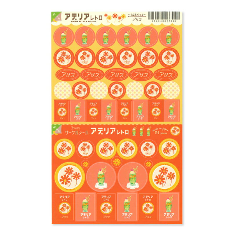 商品名 ・3wサークルシール アリス アデリア レトロ 詳細 ・種類 :シール ・品番 :10180_107rscn41 ・サイズ :・ ・メーカー名 :RYU RYU / リュリュ ・素材・原材料(本体)シール紙+透明シート張り(台紙)紙 ・商品本体サイズ縦170mm×横105mm ・その他仕様51ピース ・使用方法(1way)ミシン目が入っているので切ってシェアしたり、半分に折ってコンパクトにもなる。 ・(2way)シール裏面にあるスリットをはがせば、手帳やノートにポケットが無くても台紙ごと貼れる。 ・(3way)手帳やノートに重ね貼りができ、コレクションを見やすく保管できる ・子供から大人まで身近に楽しめるシール。 ・関連ワード:ピアス 星 車 かっこいい アウトドア ブランド バイク セット ラッピング おしゃれ ステッカー ギフト 贈り物 ・・メーカー希望小売価格はメーカーカタログに基づいて掲載しています ・↑かわいくて繊細なワッペンで手帳をデコ★↑↑お買い物の相棒↑↑何枚でも欲しくなる!新柄続々入荷↑↑ごほうびスタンプやスケジュールスタンプなど↑↑仕事にも、お勉強にも、家事にも必須↑↑大好きなあの人の大好きなところをとことん書き出そう!!↑おすすめ商品かわいい&おしゃれなシール10枚セット1,100yenかわいい&おしゃれなシール30枚セット3,630yenサマーシール 10枚セット1,100yenクリスマスシール 10枚セット1,320yenかわいいシール詰め合わせ30枚セット+6枚おまけ付き5,940yen ・かわいいシール詰め合わせ50枚セット+15枚おまけ付き9,900yen春夏秋冬165yenゆるあにまる165yen金箔スケジュールシール・カワウソ264yen金箔スケジュールシール・手描き1,100yen↑当店限定★デニム藍染め手帳ラコニックコラボ↑↑当店限定★オリジナルシステム手帳はこちら↑ ・ カテゴリー ・分類 :シール>花・植物・葉・クローバー ・分類 :サイズで探す>シール>・ ・分類 :ブランド名で探す>リュリュ(RYU RYU)>シール ・分類 :デザインで探す>シール>サ行\サークルシール ・分類 :用途・機能で探す>シール>手帳に最適サイズ