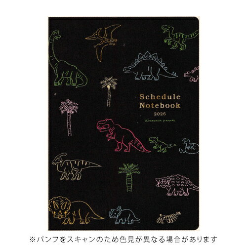 リュリュ2026年版手帳 A5 マンスリー スケジュール帳 月曜始まり ダイナソー RYU-RYU メーカー品番:DN2606 "大人が使えるイラスト手帳"で人気の、中島良二の描くアニマルパレードシリーズ。 裏表紙には表紙の恐竜たちが化石になって登場! 【内容】 年間カレンダー(2025/9〜12・2026・2027) スケジュール計画ページ(2025/9〜2026/12) マンスリースケジュール(2025/9〜2027/1) アニマルマップ/ノートページ(グリッド)/ミシン目メモ(48パーツ)/シール 〇素材:表紙・本文…紙/シール紙 〇サイズ:約H210mm×W148mm×D5mm 〇重さ:約146g 〇日本製keyword:手帳 ダイアリー スケジュール帳 文具 文房具 ステーショナリー 人気 おしゃれ お洒落 オシャレ おすすめ オススメ シンプル スタイリッシュ 可愛い かわいい キュート 恐竜 黒色