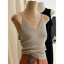 キャミソール レディース セクシー Vネック ノースリーブ ニット インナー 美背 スリムフィット アクリル素材 黒 白 カーキ おしゃれ トレンド フェミニン 普段使い 夏 トップス