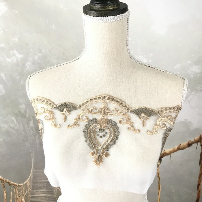 お花模様の刺繍入り衣装用チュールレースになります。 各種イベント、社交ダンス、ドレス、ステージ衣装、 舞台衣装、新体操、バトントワリング、レオタード、 演劇、ミュージカル、ベリーダンス、フィギュアスケート、 バレエ衣装、ウェディング、パーティーなど、 手作り制作など縫い付けるだけで個性的な仕上がりになります。 サイズ:W18cm カラー:ゴールド・ベージュ系 長さ:1ヤード(約90cm) ............................................................ ◆カット位置はランダムでのカットとなりますので、 模様通り又は区切りのいい部分でのカットが出来ないことを ご了承いただきますようお願いいたします。 カット位置等が気になると思われる方は、 ご購入をご遠慮くださいますようお願い申し上げます。