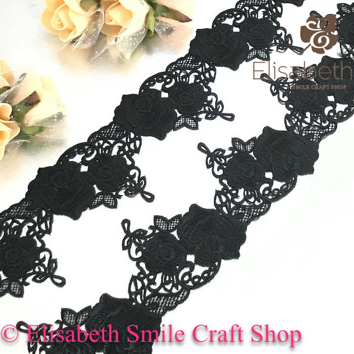 ブラックの花模様レースになります。 各種イベント、社交ダンス、ドレス、ステージ衣装、 舞台衣装、新体操、バトントワリング、レオタード、 演劇、ミュージカル、ベリーダンス、フィギュアスケート、 バレエ衣装、ウェディング、パーティーなど、 手作り制作など縫い付けるだけで個性的な仕上がりになります。 サイズ:W6.5cm カラー:ブラック 長さ:1ヤード(約90cm)