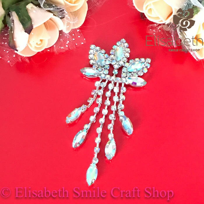 可愛い雰囲気のラインストーンモチーフになります。 衣服、ウェディングドレス、イブニングドレス、 ドレス、ダンス衣裳、バトントワリング、 レオタード、ベリーダンス、フィギュアスケート、 社交ダンス、ステージ衣装などに縫い付けていただければ、 とても品のあるゴージャスな雰囲気になります。 サイズ:H11cm W5cm カラー:シルバー・ABオーロラ