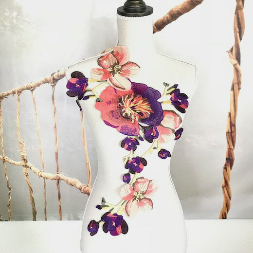綺麗なお花の刺繍モチーフになります。 インパクトがあって、 社交ダンス、バトントワリング、レオタード、 ベリーダンス、フィギュアスケート、バレエ、ドレス、 ステージ衣装、ハンドメイド材料などにお使い頂けます。 サイズ:H57cm W35cm カラー:ピンク・パープル・ベージュ系