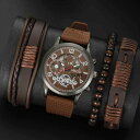 腕時計 メンズ 男性用 レトロ ヴィンテージ ラウンド アナログ クオーツ時計 合金ケース 革ベルト ブレスレット セット スポーツ カジュアル 普段使い 春夏 ファッション(x2)