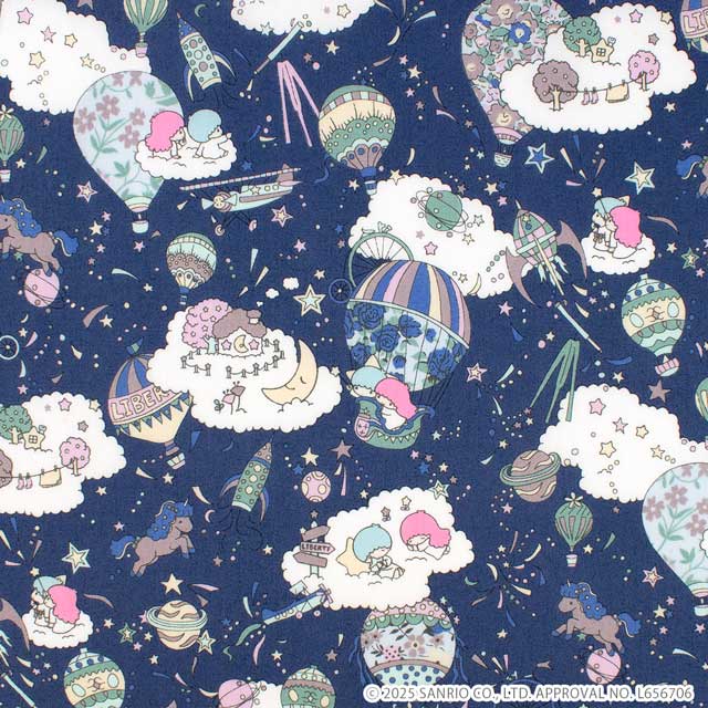 リバティプリントはベル・ブランシェ メルエフィーユ店(岡山)にて在庫管理しております。 サイズ:約108cm幅 素材:綿100%(ローン地) MADE IN JAPAN ※この生地を使用した製品の販売は固く禁じられております。 ☆メール便:3mまで対応可能! 【注意事項】 ●ボタンのサイズは2cmです。 ●実店舗と在庫を共有しているため、ご注文いただきました後に品切れのご連絡をさせていただく場合がございます。あらかじめご了承ください。 ●染色ロットやディスプレイ等視聴環境により、実際のカラーと異なる場合がございます。あらかじめご了承ください。 ●こちらの商品はカットしてのご用意となるため、ご注文後のキャンセルはできません。ご注文前にご確認いただきますようお願い申し上げます。 また返品・交換もお受けいたしかねます。あらかじめご了承ください。 My Melody & Little Twin Stars 50th Anniversary Collection 【柄名】 Sky High Stars スカイ・ハイ・スターズ 【柄説明】 望遠鏡を覗くとそこには幻想的な空飛ぶ車、熱気球、惑星、輝く星の世界が広がっています。2018年SSの子供服コレクション用にリバティのデザインスタジオにて描かれた「スカイ・ハイ」は、幼い子供の目を通じて見た不思議な世界や光景を称えたデザインです。今回の新しい作品では、この幻想的な世界をリトルツインスターズが探検し夢のような物語を紡いでいます。