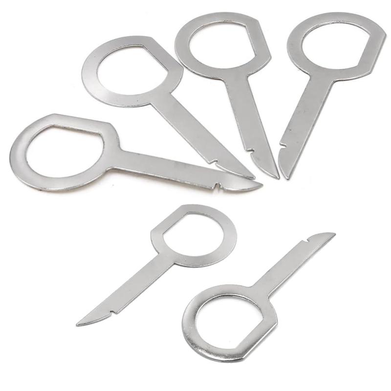 カーオーディオ除去工具 カーラジオの削除ツール ステレオ オーディオパネル解体 ステンレス 銀色調 カーラジオ取り外しツール ステレオ オーディオパネル解体 ひねりツールに対応(6個