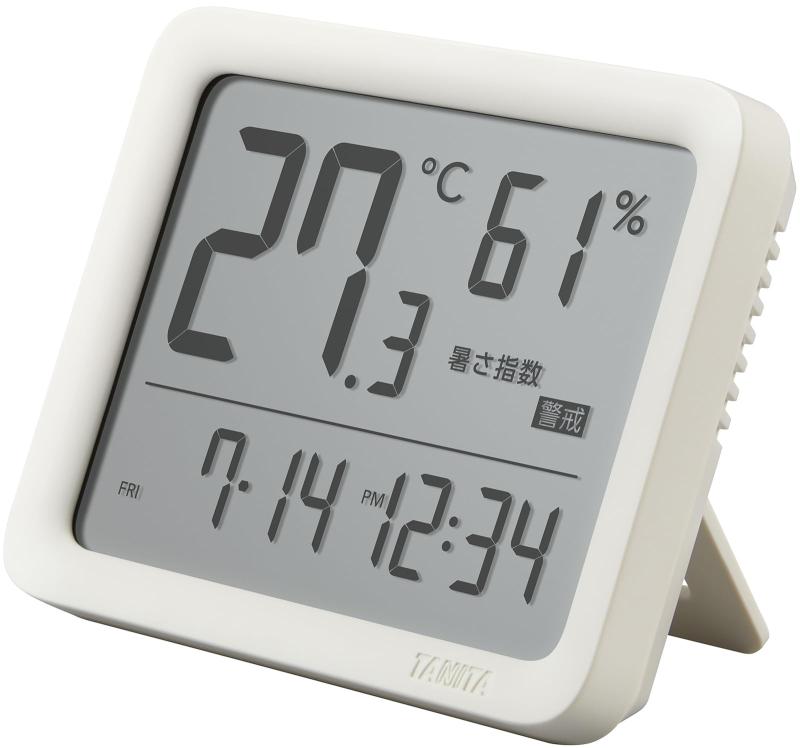 タニタ(Tanita) 温湿度計 目覚まし時計 温度湿度計 コンディションセンサー アイボリー TC-421-IVサイズ:約幅111×奥行24×高さ91mm (マグネット付きホルダー含まず)、本体重量:約137g (電池含む、マグネット付きホルダー含まず)セット内容・付属品:本体、マグネット付きホルダー、お試し用電池 (単4形乾電池 (R03)×2本)、取扱説明書 (書付き)電源:単4形乾電池 (R03)×2本、電池寿命:約1年 (1日1回アラームを使用した場合)測定範囲:温度/-5.0~50.0度 (‒5.0度未満のとき「Lo」、50.0度を超えたとき「Hi」)、湿度/20~95% (20%未満のとき「Lo」、95%を超えたとき「Hi」)測定精度:温度/0.0~40度 +-1.0度・それ以外 +-2.0度、湿度/35~75% +-5%・それ以外 +-10%