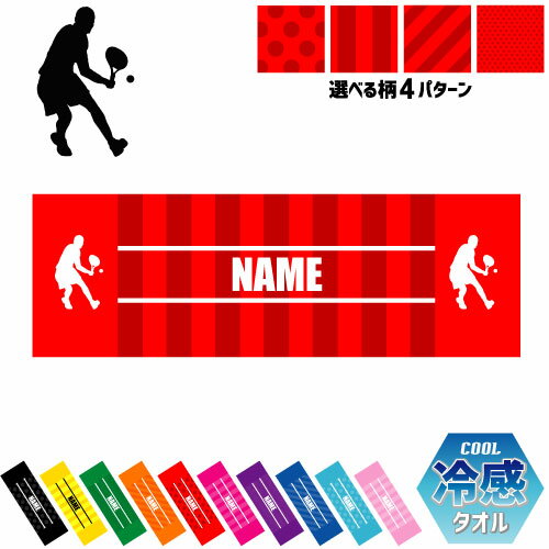「男子テニスプレーヤー」名入れ冷感タオル 冷却タオル クールタオル ストライプ ドット 水玉 柄タオル ポリエステル ネックタオル クール 清涼 首ケア 暑さ対策 熱中症対策 スポーツタオル 運動会 体育祭 テニス ピクトグラム