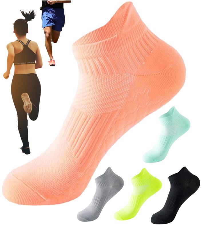 [kuuupiii] 【靴下ソムリエ監修】 レディース ランニングソックス スポーツソックス テニスソックス ゴルフソックス スニーカーソックス くるぶしソックス 滑り止め カラフル モノトーン 黒【kuuupiiiランニングソックスの特徴】 (1)立体設3D構造+アーチサポート機能で今までにないフィット感+機能を実現 (2)足底部分を「新特殊足底凸凹設計」にすることで従来の通気性・クッション性だけでなく、アスリートの全方向への 動きに対応できる特別仕様のソックスとなっております。 (3)足底の「新特殊足底凸凹設計」は、汗を吸う吸汗性にも優れ運動中の快適さをキープします。 (4)スポーツソックスの基本として、甲部はメッシュ編みにすることにより汗を素早く放出する速乾性に優れています。 (当社製品比、速乾性約50%up) (5)独特のヒールカウンターデザインによりアキレス腱を保護し、同時に脱げにくくなりました。 (6)アーチ・サポート構造は運動による足の疲れを軽減し運動のパフォーマンスをupさせます。 (7)素材は抗菌防臭加工で、気になる足のニオイを抑制します。【着用シーン】 ランニング、ウォーキングなどの競技だけでなくフィットネス、マウンテンバイク、ハイキング(夏場)、トレイルランニングなど すべての「運動」に適したスポーツソックスで、きっと多くのプレイヤーにとって有益なアイテムとなり得ます。 また、とても履き心地の良いソックスですから、スポーツの時だけでなくカラフルな色合いを普段のオシャレ時にも楽しむことができます。 ぜひ、あなたのお気に入りをお選び願います。【素材】 特殊ナイロン・ポリウレタン【サイズ】 23cm~26cm、 レディースおよび足の小さめなメンズやジュニア兼用適用 ジョギング・ランニング・マラソン・トラック・トレーニング・フィットネス・ウォーキングetc【製品の特徴】 ・「新特殊足底凸凹設計」により「全方向への動きに対応る」「クッション性がある」「ソフトな履き心地」「自然な滑り止め効果」で 着用いただけるソックスとなっております。 ・運動用のソックスとして「アーチサポート機能(足裏の疲れを軽減)」「ヒールカウンター設計(アキレス腱保護)」「甲部メッシュ編(通気性up)」 を装備し、なおかつ「サラッとした感触(吸水速乾機能)」「気になる匂いを抑える(抗菌防臭加工)」も備え、快適で優れたソックスです。