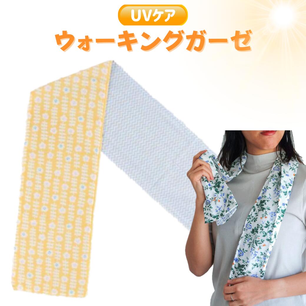 ウォーキングガーゼ 20×120cm 北欧花柄×ヘリンボーン イエロー 3重ガーゼ フェイスタオル スポーツタオル UVケア 紫外線対策 日焼け対策 ジョギング ランニング フィットネス ガーデニング ゴルフ テニス アウトドア
