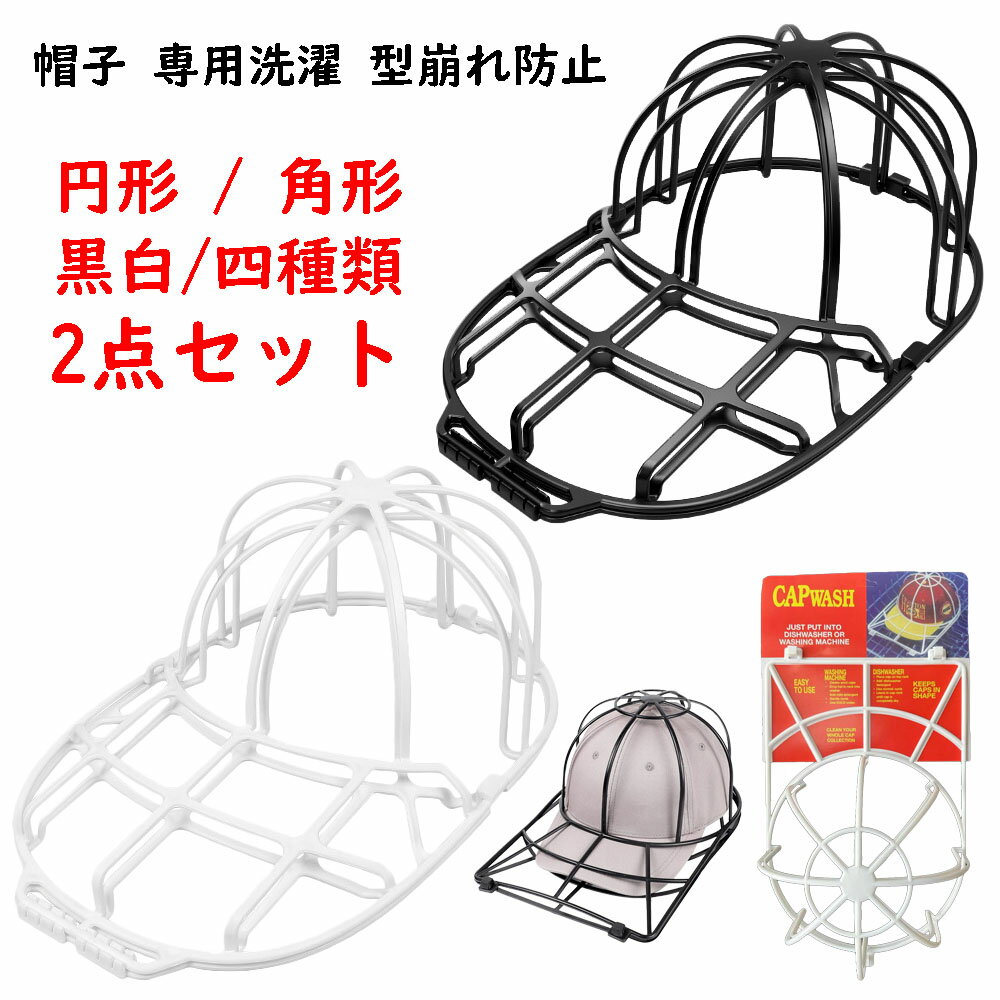 2点セット 円形/角形 キャップウォッシャー 帽子 専用洗濯ネット 型崩れ防止 洗濯機 食器洗い機 白 黒 野球帽ウォッシャー 大人 子供用 ラック簡単 吊り下げ収納 洗濯用具 旅行 洗濯用ネット 丈夫 帽子型 物干しハンガー テニス スポーツ キャップ物干し ホワイト ブラック