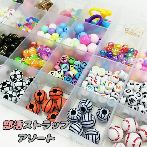部活 ストラップ アソート 野球 サッカー テニス バレーボール バスケ 資材セット 福袋 子供 アルファベットビーズ セット ケース入り assort381 GreenRoseYumi