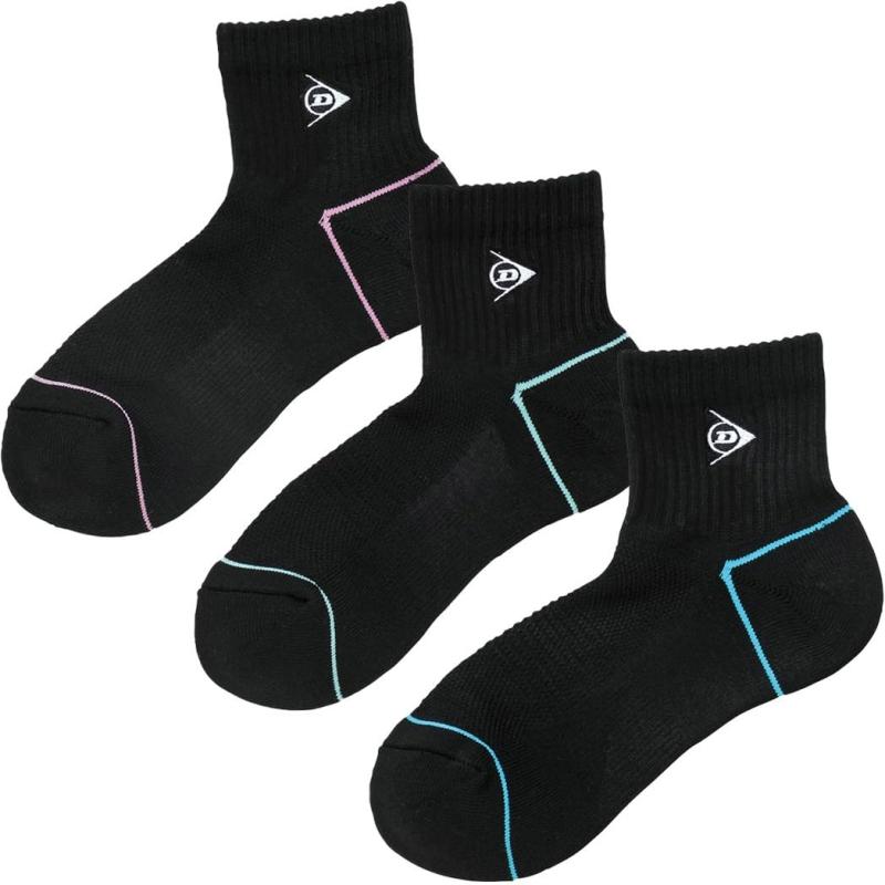 DUNLOP(ダンロップ)テニス 3足組 レディースソックス(ハーフ)ブラック TPO6444W