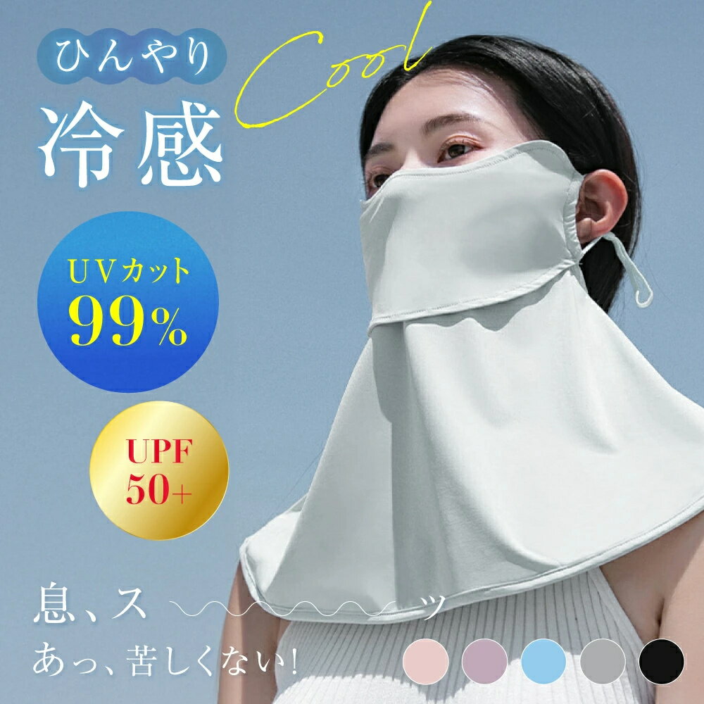 フェイスカバー UVカット フェイス マスク 冷感 暑さ 紫外線 対策 日焼け防止 洗える 接触冷感 息苦しくない ネック カバー ガード 通気性 遮熱 調節 顔 首 アレルギー肌 ガーデニング 車の運転 テニス ゴルフ