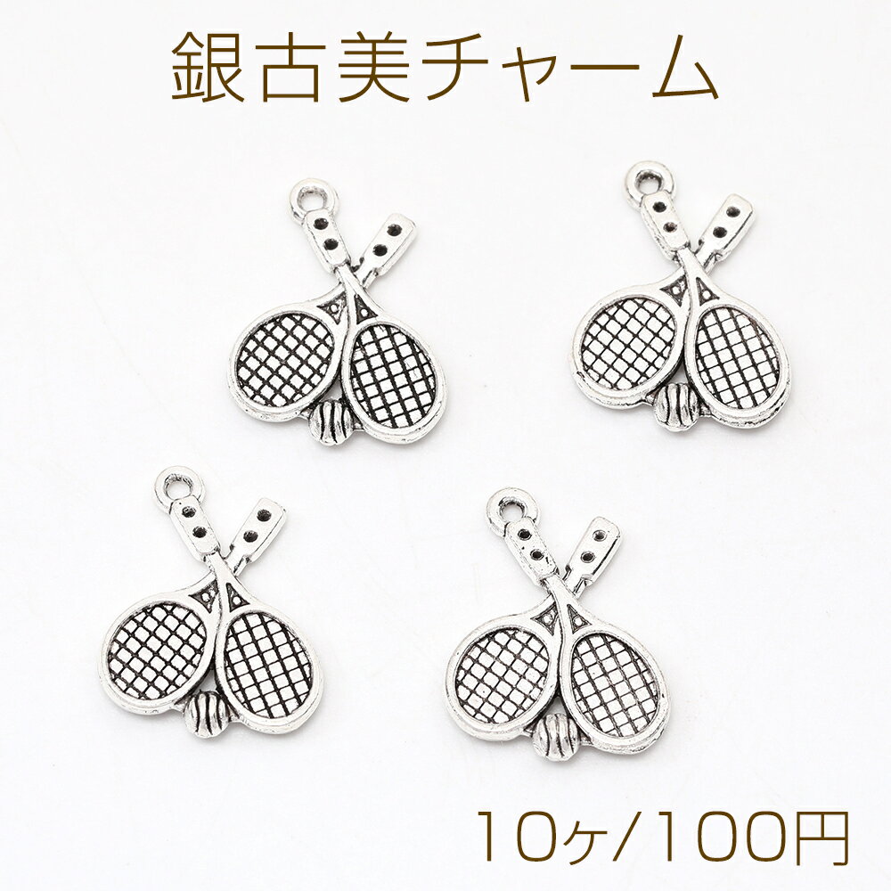銀古美チャーム アンティークシルバー メタルチャーム スポーツチャーム テニス カン付き(10ヶ)