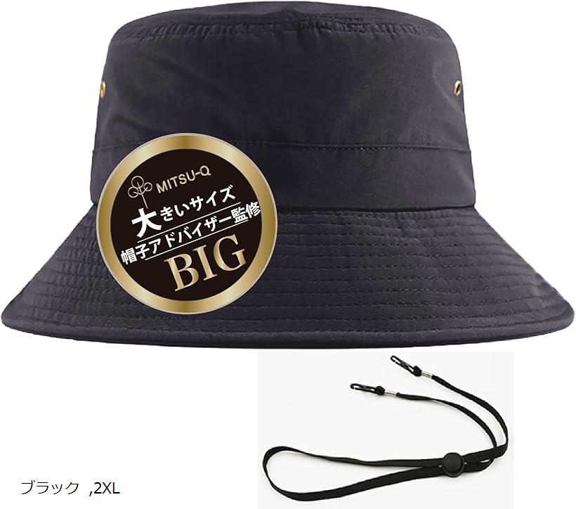 帽子 バケットハット サファリハット メンズ 日除け帽子 UVカット検査済み ポリエステル製 小顔効果(ブラック, 2XL)