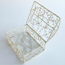 フタ付き ボックス型 ワイヤーベース ミルキーホワイト 1個 フラワーベース 花器 リングピロー アレンジ用 小物入れ ワイヤー製品