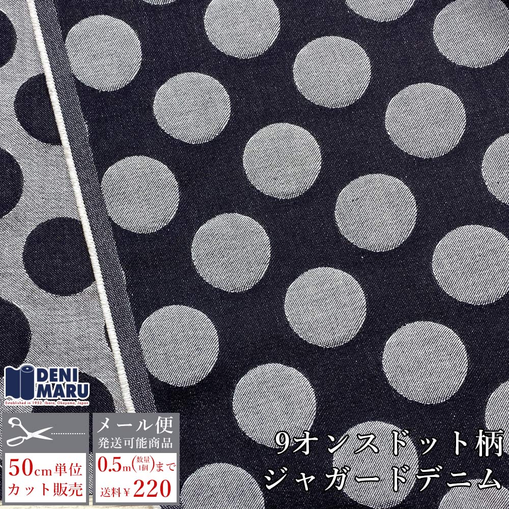 ジャガード 生地 デニム生地 布 ドット柄 水玉 デニム 9オンス ジャガードデニム レトロ ヴィンテージ 綿 コットン100% インディゴ 生地 ジーンズ バッグ 雑貨 エプロン 日本製 岡山デニム 井原デニム でに丸