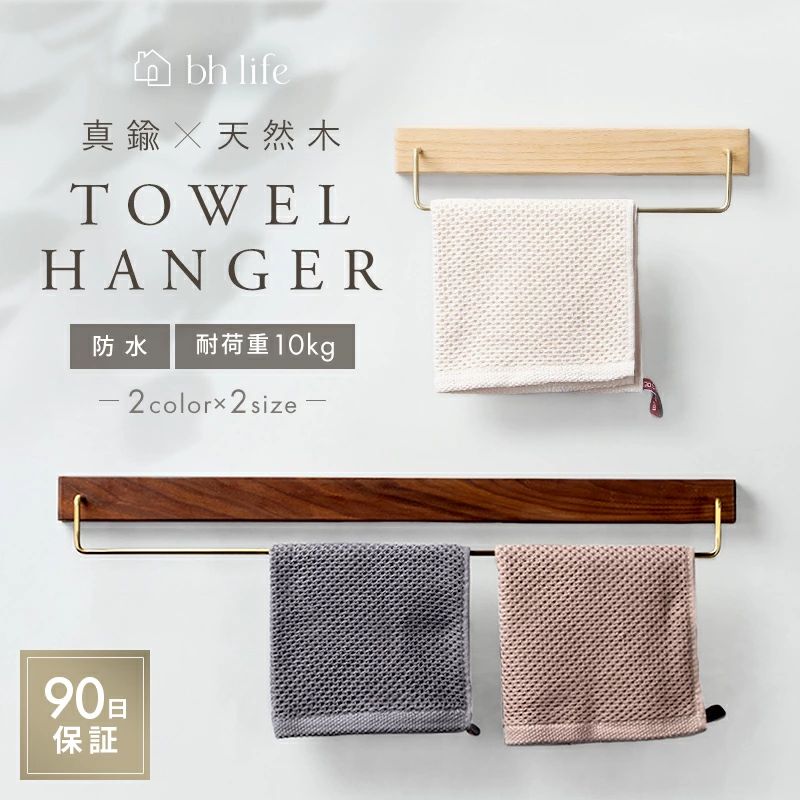 商品情報ブランド名bh lifeタオルハンガー 真鍮 タオル掛け 洗面所 壁 タオルホルダー タオルバー 60cm 30cm おしゃれ 木 シンプル ヴィンテージ風 耐衝撃性 錆びにくい 北欧風 アイアン キッチン おすすめ 洗濯機 壁付け アンティーク タオル掛 キッチン 洗面所 台所 トイレ 壁 業務用 レストラン 送料無料 物干し シンプル 2サイズ かわいい お洒落 ホテル アイアン 木 真鍮 タオルハンガー 洗面所 タオルホルダー 業務用 収納 壁付け 【商品説明】■こだわりの素材真鍮と天然木の組み合わせが好相性。どちらも使い込むほどに味が出てくるので、経年劣化を楽しみながら長い間ご愛用いただけます。■防水仕様防水加工が施されているので、洗面所やキッチン等でも安心してご使用いただけます。■約10kgの高荷重耐荷重10kgなので、フックなどを使用すれば、タオル以外にも使用していただけます。■長さが選べる2サイズ生活スタイルや用途に合わせて、お選びいただけます。【Mサイズ】横幅:約30cm小さめのタオルや、畳んだフェイスタオル等を1枚かけるのにおすすめ。【Lサイズ】横幅:約60cm大きめのタオルや複数枚のタオル、一緒に小物を掛けたい方におすすめ。【商品詳細】●サイズ(約)Mサイズ:幅30×高さ4×奥行2.3cm(ハンガー幅28cm)Lサイズ:幅60×高さ4×奥行2.3cm(ハンガー幅56cm)※寸法は多少の誤差が生じる場合がございます。※詳細は説明画像をご参照下さい。●素材:天然木/真鍮●付属品:ネジ●カラーバリエーション・ブラウン・ナチュラル【注意事項】・パソコン・モニター等により実際の商品と多少色味が異なる場合がございます。 2