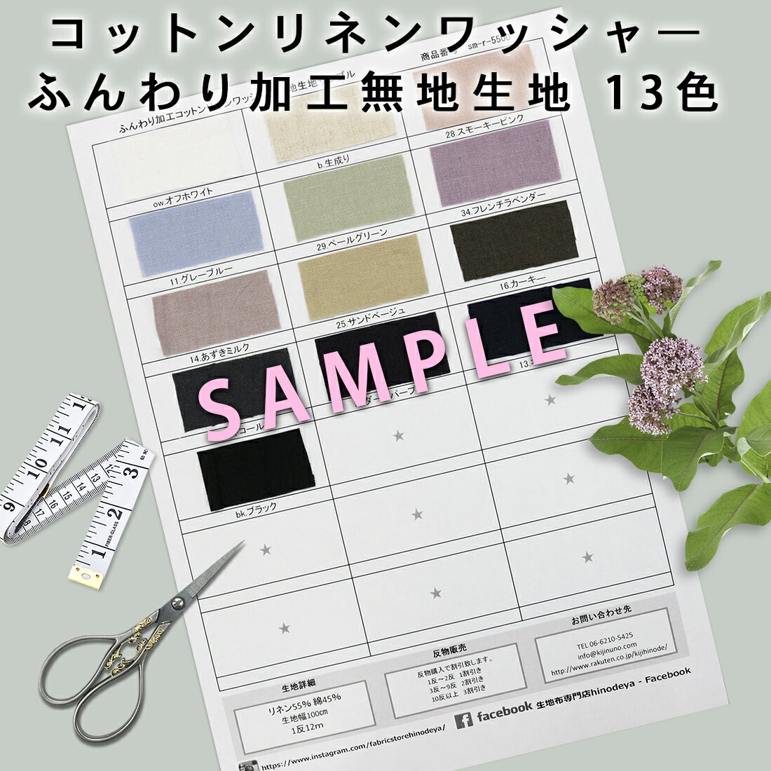 コットンリネンワッシャ―ふんわり加工無地生地13色のサンプルです。 色を確かめてから購入していただけます。コットンリネンワッシャ―ふんわり加工無地生地13色のサンプルです。 色を確かめてから購入していただけます。 万一、品切れの場合も数日で作成できますので 品切れの際はしばらくお待ちください。 コットンリネンワッシャ―ふんわり加工無地生地はこちらから