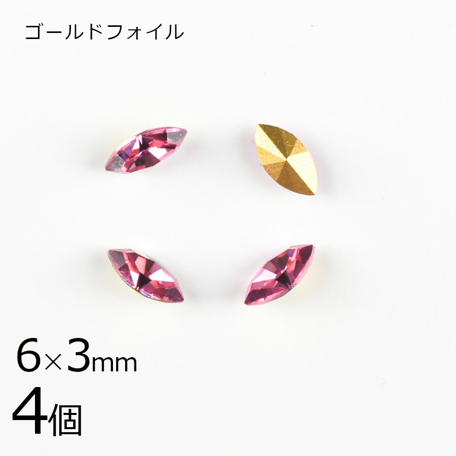 【4個】【#4200】【ゴールドフォイル】【ヴィンテージ】マーキス ローズ ピンク系 ピーチ 約6×3mm ヴィンテージ ハンドメイド 手芸 手作り 材料 ビーズ パーツ スワロフスキー ガラスビーズ アクセサリー