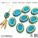 【最大500円OFF】0のつく日限定クーポン!アンティーク調 アクリルビーズ 楕円 17mm 8個 ターコイズブルー系 オーバル ハンドメイドパーツ うさぎの素材屋さん ゴールドライン入り ビーズ ヴィンテージ風