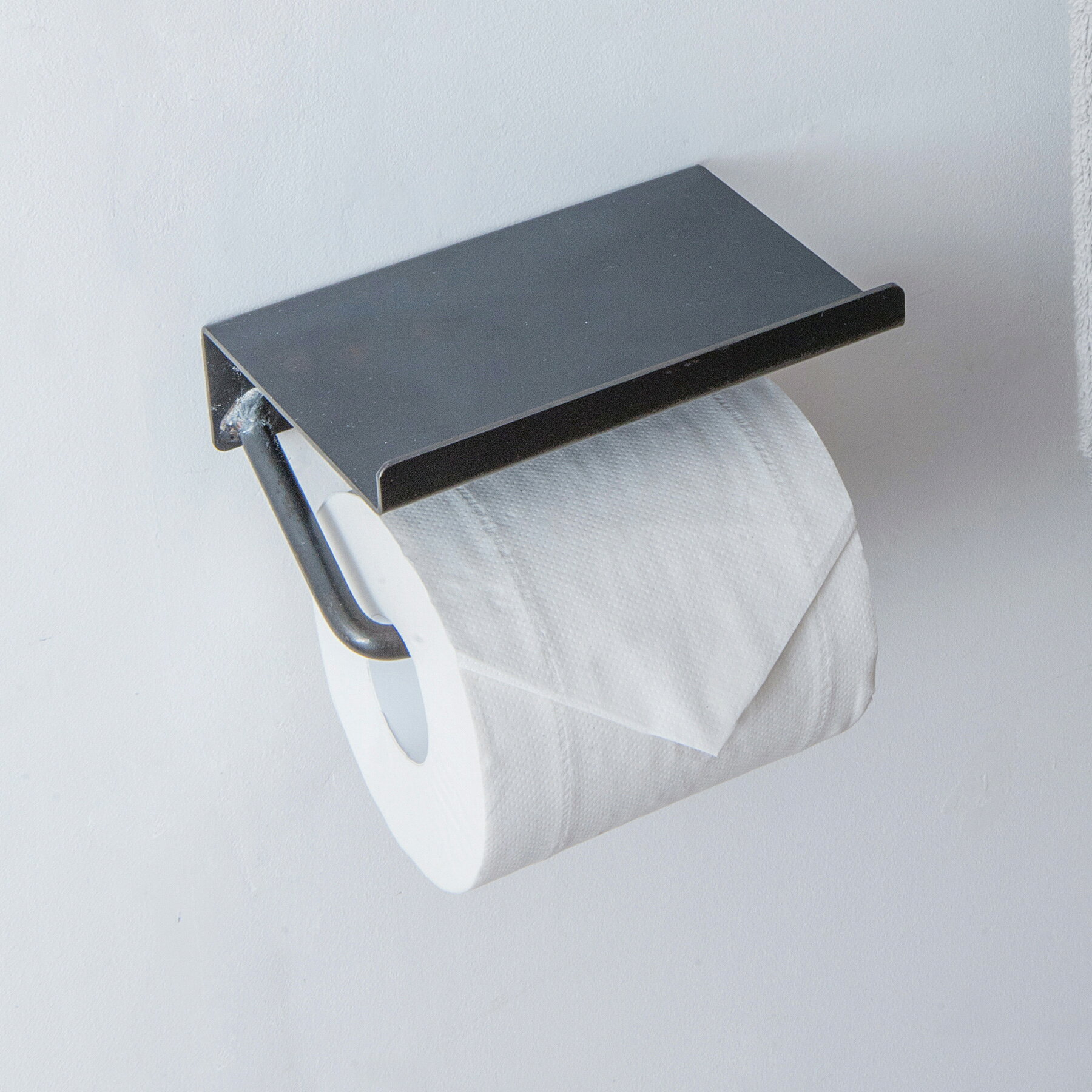 壁掛け トイレットペーパー ホルダー シングル 1個用 壁 棚 棚付き 小物置き ウォール 無地 アンティーク風 ビンテージ風 インダストリアル 黒 鉄 ミルスケール 取り付け 模様替え シンプル モダン DIY インテリア 北欧 おしゃれ トイレ
