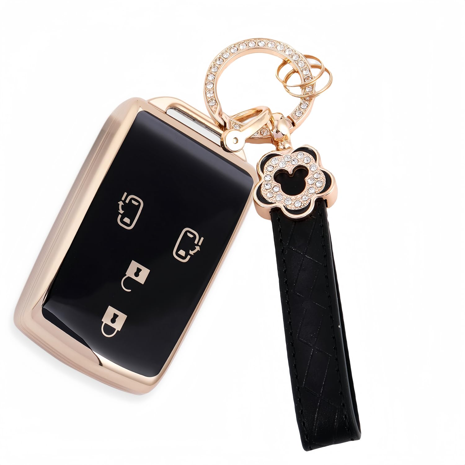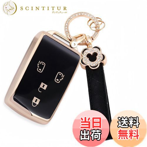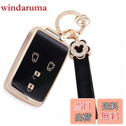 【送料無料】[Nacalikeey] 可愛のキーケース適合ダイハツ ウェイク LA700S/LA710S H26.12スノーキーホルダータント/タントカスタム LA600S/LA610S H25.10〜H27.11きらめきキーカバーキーホルダー(4ボタン,ブラック)