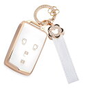 【送料無料】[Nacalikeey] キーケース適合ダイハツ ウェイク LA700S/LA710S H26.12スノーキーホルダータント/タントカスタム LA600S/LA610S H25.10〜H27.11きらめきキーカバーキーホルダー可愛のキーケース(ホワイト,4ボタン)