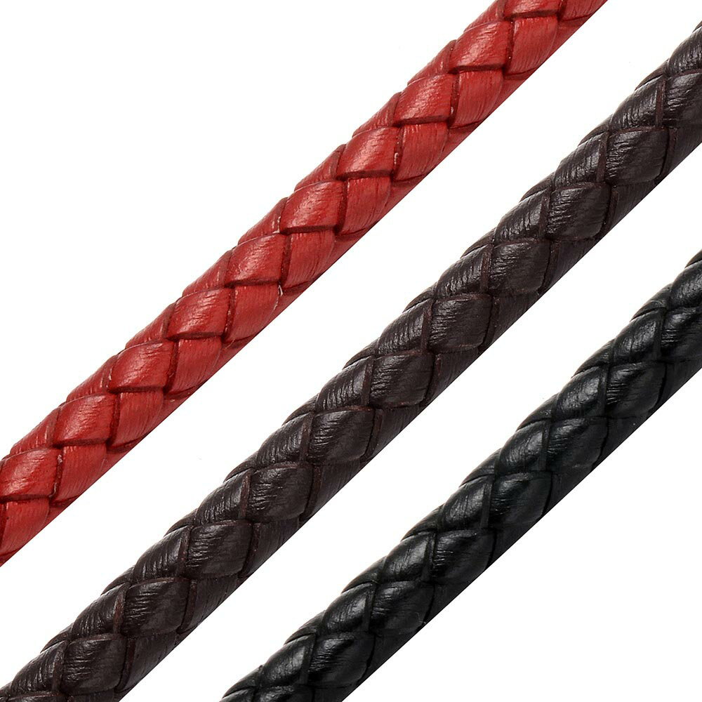[ DIY用 丸革紐 6mm] 6ミリ編み込みレザーロープ /10cm単位 皮ひも 手作り ハンドメイド用 レッド 赤色 ブラック 黒色 ブラウン 茶色 男子 女子 人気 ブレスレット アンクレット ウォレットチェーン チョーカー バングル 皮アクセサリー ネックレス 部品 単品 パーツ