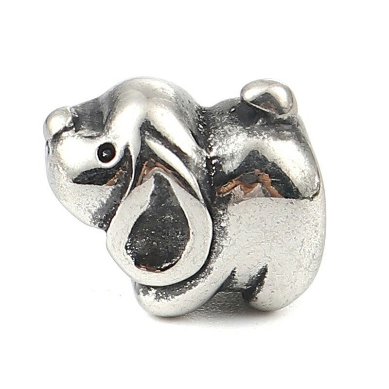 5mmワイヤー用 5mm丸ひも用 5ミリ革紐用 5.0mmロープ用 ドッグステンレスパーツ 3D 立体 おもしろ アニマル イヌ 犬 ビーズパーツ 通す ネックレス ブレスレット アンクレット DIY 手作り 材料 フリマ 部品 クラフト アクセサリー 部品 金具 可愛い 人気 シルバー 銀色