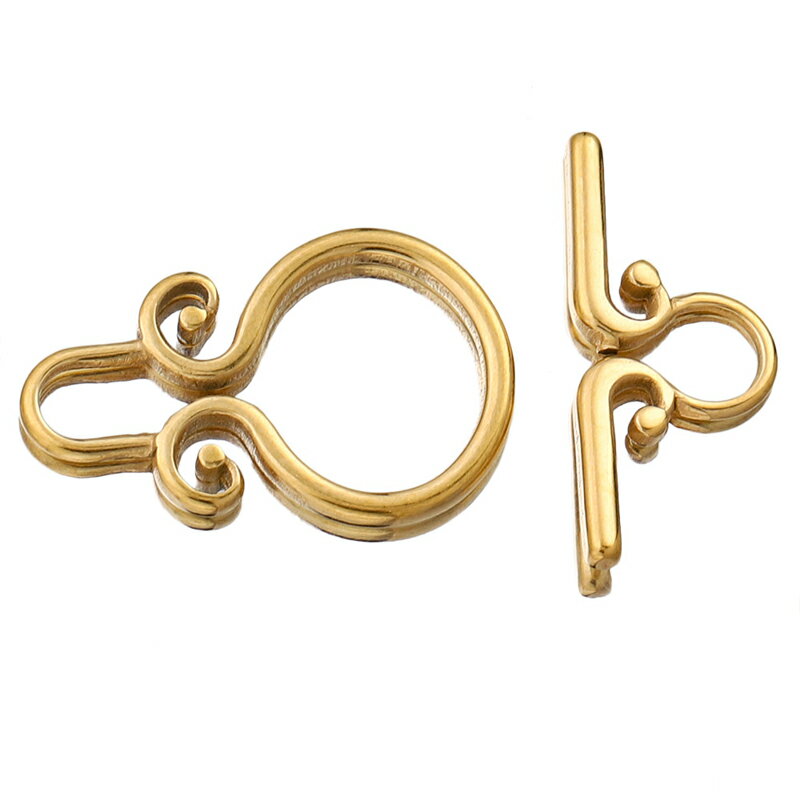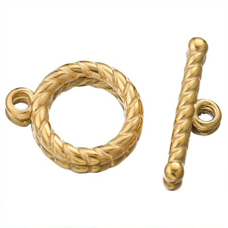 ゴールドセーリングロープステンレスマンテル/1セット 金色 金メッキ Tバー ネックレス アンクレット 留め具 止め具 部品 リングと棒 DIY 手作り ハンドメイド 修理 金具 アクセサリー用 パーツ トグル クラフト 自分で作る メンズ レディース 留具 止具 製作 縄 紐 マリン