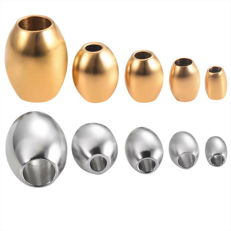 [ 4mm用 2mm用 1mm用 ] ワイヤー用 丸ひも用 革紐用 ロープ用 ゴールド シルバー ステンレスバーレルパーツ ビーズパーツ 通す ネックレス ブレスレット アンクレット DIY 手作り 材料 金具 部品 クラフト アクセサリー ハンドメイド 金色 シンプル 樽型 タル型 金色 銀色