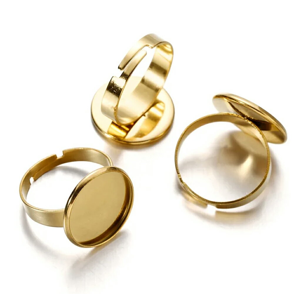 [10mm用 12mm用 14mm用 16mm用 18mm用 20mm用 25mm用] ゴールドカボション用 丸皿ステンレスDIYリングパーツ 1個販売 指輪 カメオ ステンレスリング フリーサイズ ペアリング プレゼント 結婚 記念日 誕生日 手作り ハンドメイド 金具 クラフト 自分で作る ミール皿 金メッキ