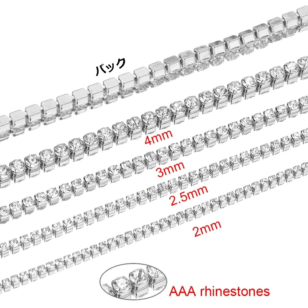 AAAラインストーン ステンレスチェーン 10cm単位 トリプルA 石付き ジュエル クリスタル キュービックジルコニア キラキラ DIY ネックレス ブレスレット アンクレット 量り売り チョーカー 計り売り 手作り ハンドメイド メンズ レディース デコレーション 銀色 シルバー
