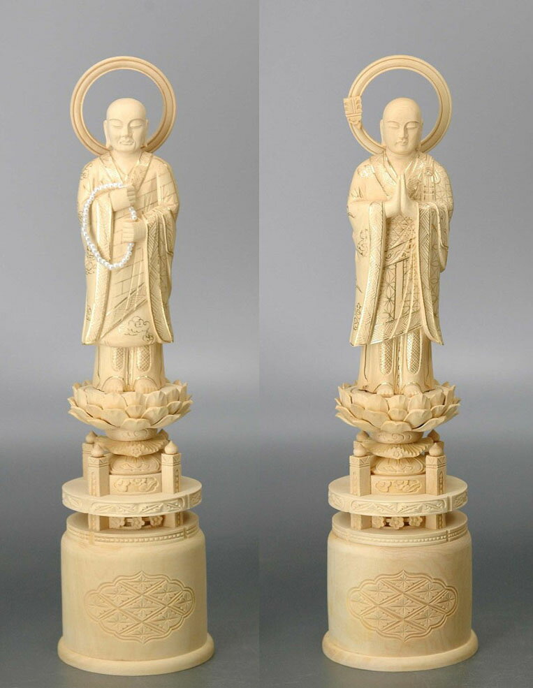 柘植製 両大師立像 身丈4.0寸(12cm) [金泥付]