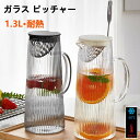 ガラス ピッチャー 1.3L 蓋付き 冷水筒 耐熱 ガラス 麦茶ポット 1.3リットル 大容量 水 ポット 冷蔵庫 水差し ボトル 冷茶 ジャグ 洗える ウォーターピッチャー おしゃれ 冷茶ポット 冷蔵庫ポット お茶 炭酸 ティーポット