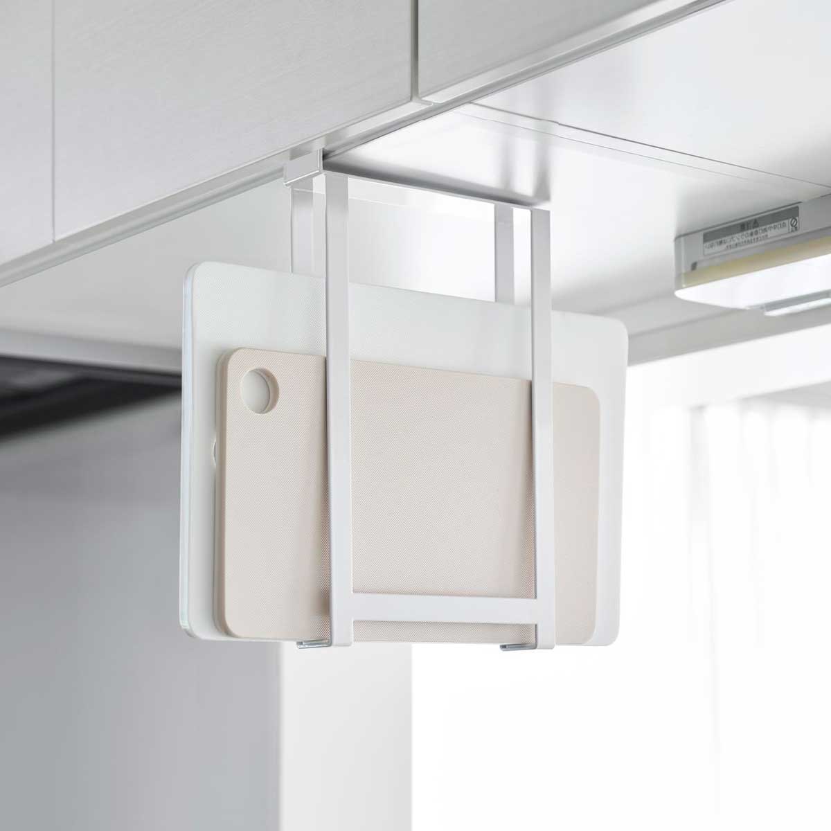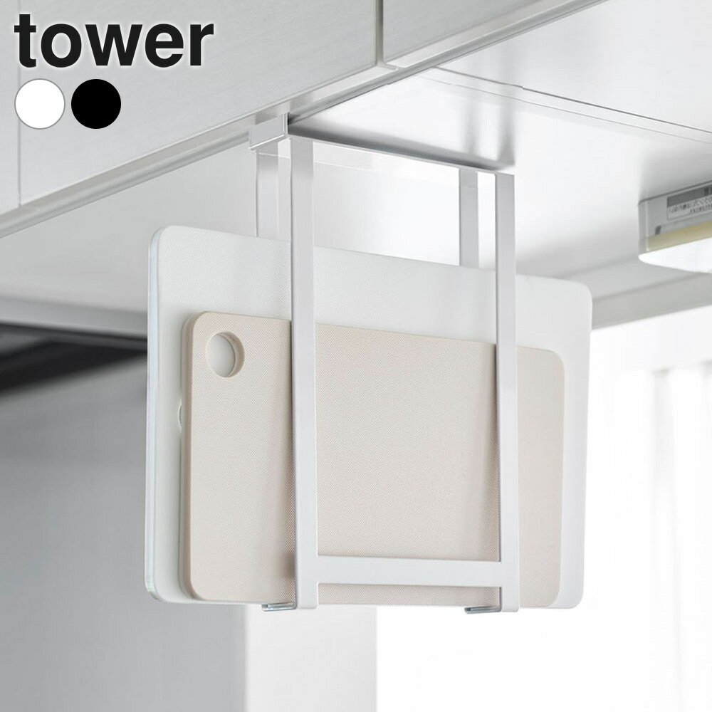 山崎実業 tower タワー 戸棚下まな板ホルダー スリム ホワイト 10503/ブラック 10504 | 吊り戸棚収納 吊り下げ収納 浮かせる まな板ラック まな板置き トレー お盆 収納ラック キッチン収納