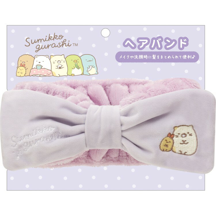 すみっコぐらし ヘアバンド ねこ&えびふらいのしっぽ パープル ヘアターバン 洗顔 メイク