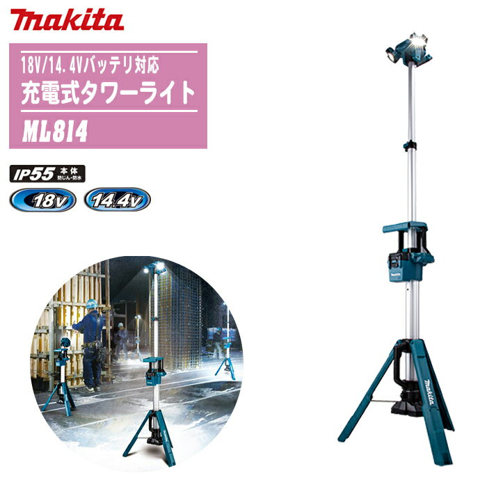 MAKITA マキタ 充電式タワーライト 本体のみ ML814【18V/14.4Vバッテリ対応】【スポット・エリア照射 コンパクト収納 防災 災害 現場 アウトドア キャンプ 充電式LED 防じん・防水】※バッテリ・充電器は別売です。