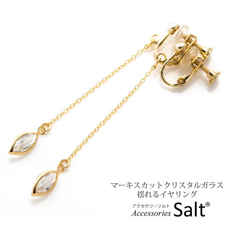 イヤリング 揺れる マーキス型 クリスタルガラス お洒落 かわいい シンプル 結婚式 K14GF ゴールド フィルド クリア ドロップ ゆれる 大人 金属アレルギー対応 ニッケルフリー 18金 18k 10金 10k スワロフスキー ロングイヤリング お探しの方【メール便 送料無料】【あす楽】